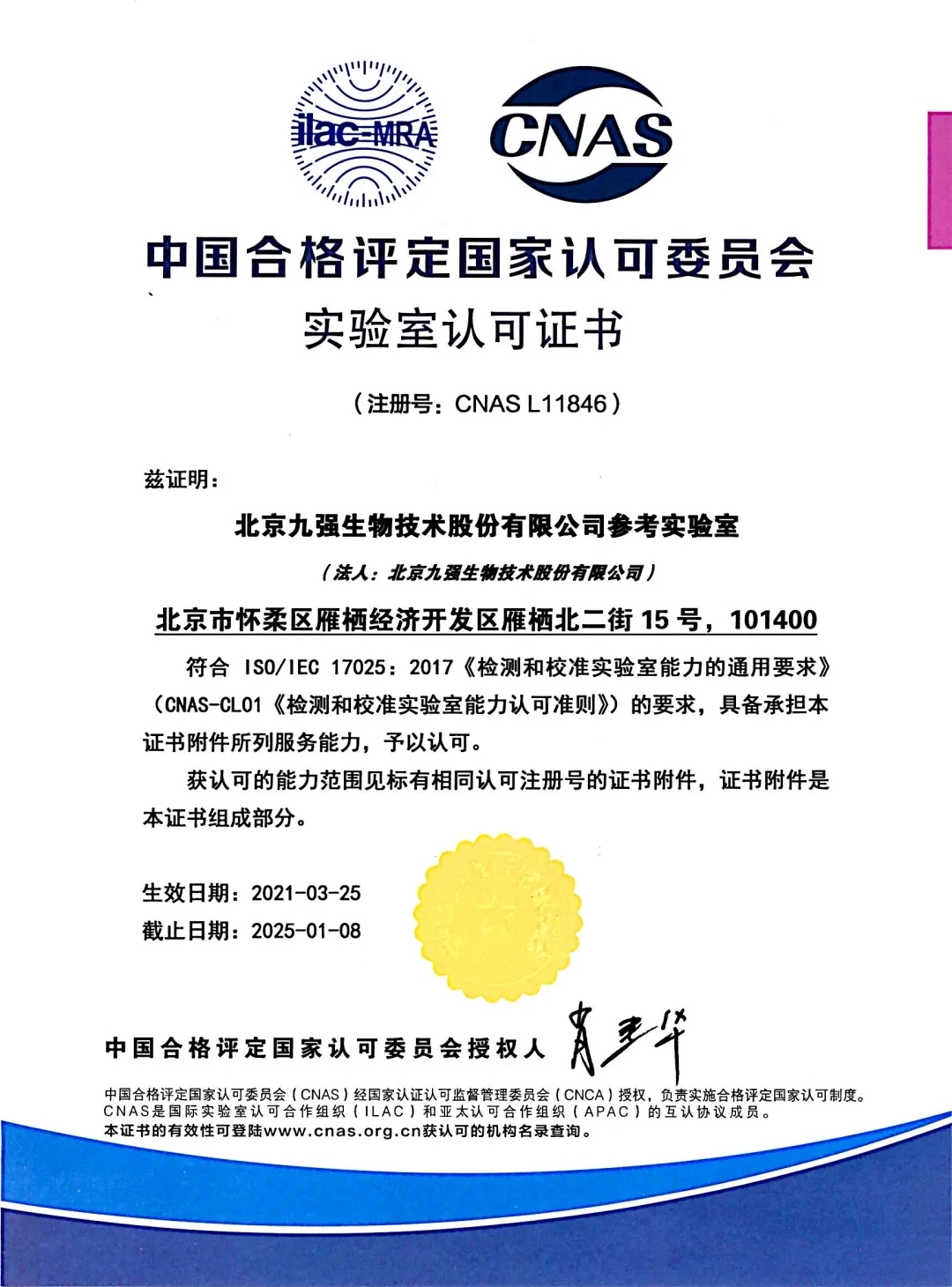 九強質檢中心與參考實驗室取得CNAS雙認可。