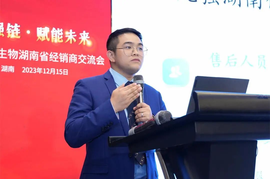 九強生物湖南省區總監羅波先生針對湖南業務介紹及經銷商發展策略進行了細致的交流,就湖南目前情況、招商產品線與合作模式,帶來了非常精彩的內容分享。