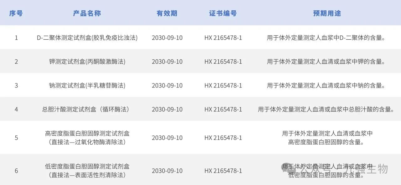 近日,九強生物D-二聚體測定試劑盒等六項產品獲得歐盟IVDR CE認證,具體情況如下: